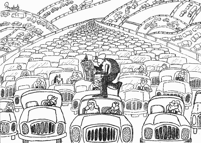 Yo había visto películas que satirizaban situaciones de embotellamientos de vehículos en los regresos de veraneantes a los centros urbanos de grandes ciudades como México, Madrid, Tokio. De ellos, los atascos, he vivido una versión sinóptica en Costa Rica en la carretera hacia Cartago y en la carretera hacia Heredia (dos horas en la primera y 1 hora en la segunda) y me habían parecido excesivos. Y no porque no ocurran más presas de vehículos en Costa Rica, sino porque a mí, en mis cotidianos trayectos, no me había pasado.