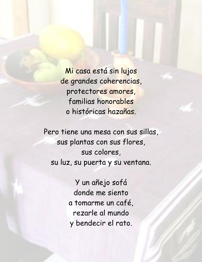 Mediana como mi ambición y estatura, busco una casa. Con tres dormitorios porque somos tres quienes la necesitamos, una cochera para el carro que nos acerca amistades y paisajes, un jardín con flores para que, como el Principito, cada uno pueda regar su flor preferida, un patio para mis hijos, una sala-comedor-cocina para gozarnos en trío o con amigos.