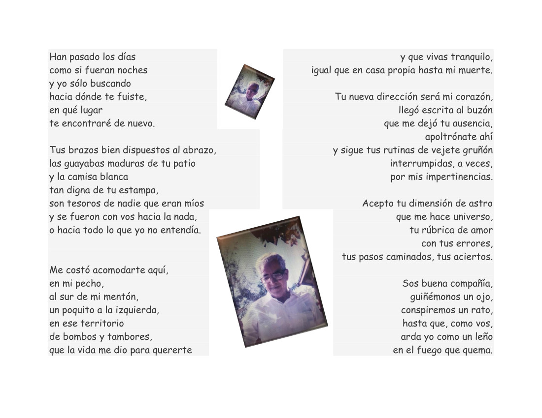 Cuando las campanas sonaron el primero nos fuimos a la Parroquia de Santa Ana en el viejo auto de un amigo. Papi y yo adelante, atrás los sobrinos Abelino, Martín y Karlely. Apenas empezaban a llegar mas personas. Nos sentamos en la frescura de las largas bancas de madera: Ruth a la derecha de mi papi y yo a su izquierda. La iglesia y mi padre parecían compartir esa vejez solemne y clara a la que nos arrimamos para tomar una bocanada de paz.